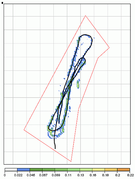 with 3 dimensional presentation of dredging tracks, slope integrity test.