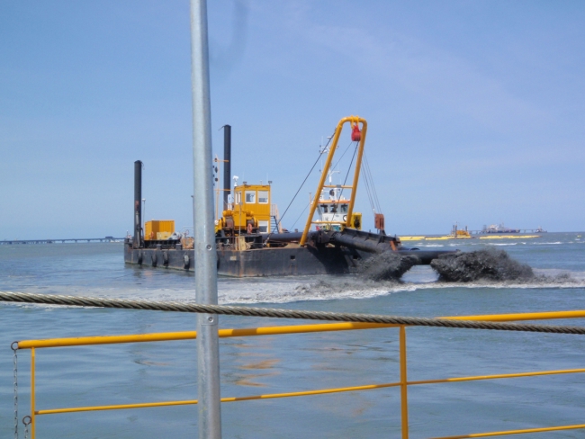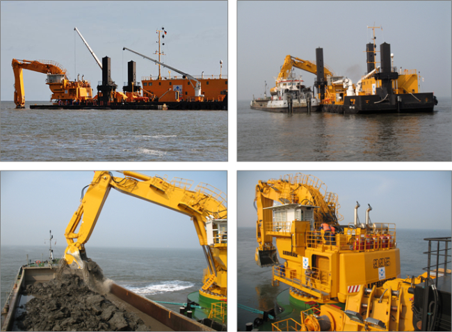 Aufgespültes Volumen: 48.8* 106 m3 (el. Messung beim Baggern, Stand 07.04.2011)
